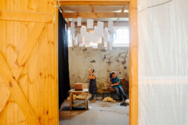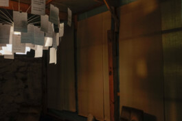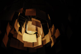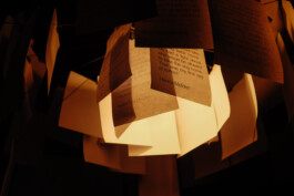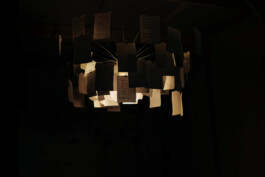 So I did and additionally I wanted to have a visualization of the thoughts and narrations, which you can hear in the Soundpiece in the room. So I created this Lamp, by welding a steel construction and put quotes from the time-witnesses.