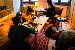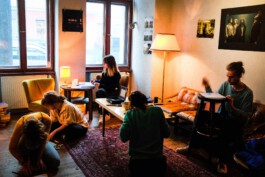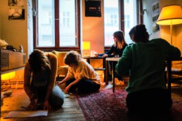 The workshop series is a portrait experiment: close your eyes, open your heart. Through techniques of visualisation, blind drawing, intuitive writing, working with colours, clay and other materials, self-portraits are created - abstract and vivid and understandable in a coded way.